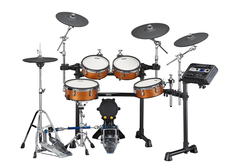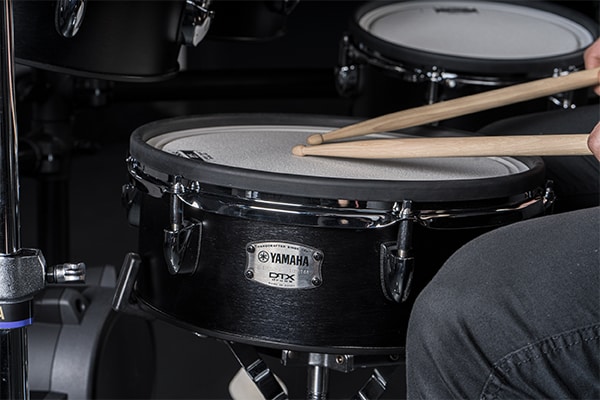 Les peaux Yamaha TCS (Textured Cellular Silicone) présentent une structure interne unique qui offre une réponse réaliste avec une dureté et un rebond réalistes, ainsi qu'une surface traitée qui empêche le glissement des baguettes. Le résultat est une sensation de batterie naturelle qui vous encourage à continuer à jouer.