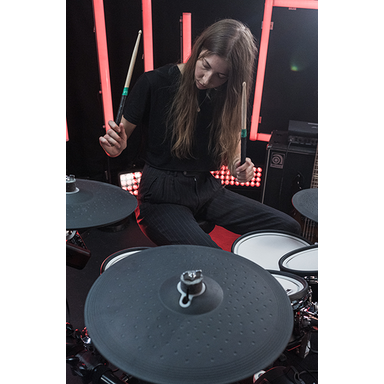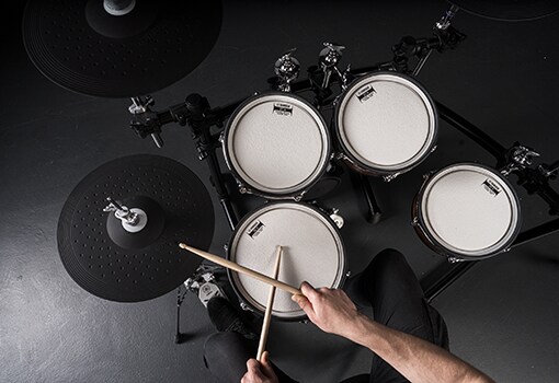 Les peaux maillées utilisent deux plis et sont fabriquées par Remo. Elles offrent une réduction du bruit, une durabilité et une sensation de frappe exceptionnelles, ainsi qu'un excellent rebond, ce qui les rend très confortables à jouer. Les peaux peuvent être réglées en fonction de vos préférences personnelles. Le pad de la caisse claire est équipé de trois capteurs qui répondent avec précision au travail délicat des baguettes.