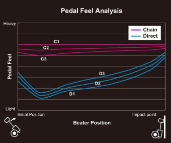 L'entraînement direct crée un lien direct entre la pédale et le batteur, transmettant instantanément le mouvement du pied du batteur au batteur. Le lien peut être glissé dans trois positions, ce qui permet au batteur de régler avec précision l'action de la pédale en fonction de sa performance préférée.
