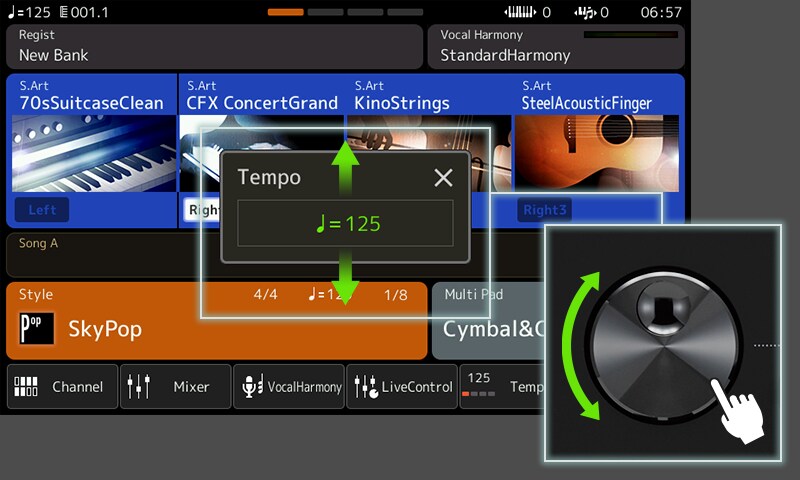 In the Home Display, Tempo is assigned as default to the Data Dial, making for quick and easy tempo adjustments.