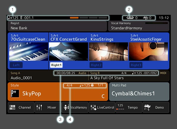 Lorsque vous jouez sur votre Genos, concentrez sur ce qui est important : votre performance. L'écran d'accueil récemment repensé propose désormais des informations vous permettant de contôler d'un coup d'œil ce qui se passe pendant que vous jouez.