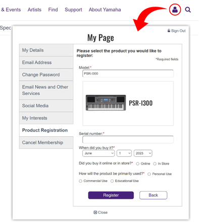 1. Sélectionnez l'onglet « Enregistrement de produit » sur Ma page.