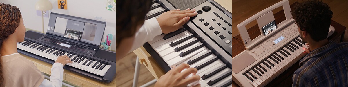 PSR-EModèle standard de clavier portable à 61 touches pour ceux qui touchent un instrument à clavier pour la première fois, ou même pour les claviéristes dans le cadre d'une utilisation performante. Il est doté de fonctions polyvalentes, d'une action expressive du clavier tactile et de nombreuses fonctions pratiques pour que même les débutants prennent plaisir à en jouer immédiatement.