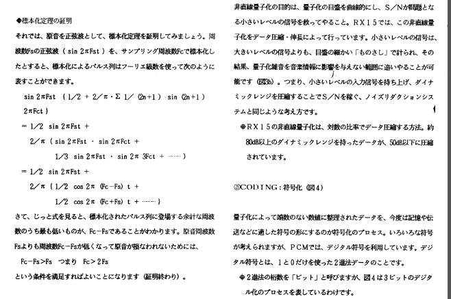 The RX11 owner's manual features a detailed explanation of PCM. At right is a section quoting numerical formulas to prove sampling theories, information you would never find in a modern owner's manual.