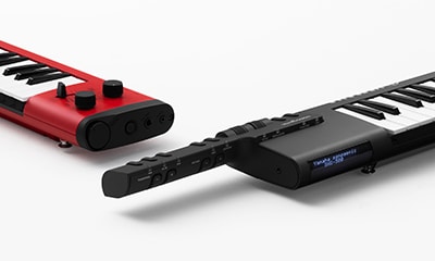 The Sonogenic SHS-500 is a "keytar", a digital keyboard that can be held like a guitar, designed to allow anyone to experience the fun of musical performance immediately, even if they've never played a keyboard before. With a JAM function that automatically matches notes played on the instrument to the chord progressions of songs played on connected smart devices, the SHS-500 lets even beginners enjoy performing along with their favorite songs. Weighing just 1.5 kg with a built-in speaker, these instruments can be operated using batteries only and come equipped with 30 instrument voices, a knob that lets you control a wide range of effects, and even a MIDI terminal. The Sonogenic SHS-500 features a simple design while still being a great choice for full-fledged performances and musical composition.