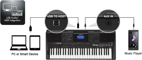 Le PSR-EW400 permet le transfert audio via un terminal USB TO HOST.* Vous pouvez enregistrer vos performances dans votre ordinateur ou dans un appareil intelligent.