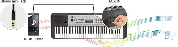 Le YPT-255 est équipé d’une entrée auxiliaire, pour reproduire le son émanant d’une source externe en bénéficiant de l’amplification interne du clavier. Ecoutez ou jouez ainsi sur vos morceaux favoris.