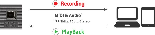 L'interface USB TO HOST vous permet de connecter un ordinateur ou un appareil iOS afin d'enregistrer en audio sans interface additionnelle. Un large choix d'applications éducatives ou créatives sont disponibles sur l'App Store* *Pour se connecter à un appareil iOS, consulter le mode d'emploi : "iPhone / iPad Connection Manual"