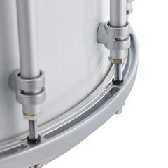 Un anneau d'insertion en aluminium côté caisse claire est standard, empêchant la déformation de la coquille et maintenant une hauteur stable même lorsque l'accordage à haute tension est utilisé.