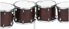 Suite à des études très poussées pour déterminer la meilleure taille pour cette série spécialement conçue pour une utilisation en orchestre, nous avons adopté une structure de taille basée sur la relation proportionnelle entre le diamètre et la profondeur, ce qui donne : pour chaque augmentation de 1 pouce du diamètre, on augmente la profondeur de 1/2 pouce. Ce procédé a permis d’atteindre la sonorité « classique » désirée et la profondeur persistante qui est fondamentalement différente de celui des toms de concert actuels. En résolvant ce problème traditionnel entre la couleur sonore et la durée de résonance qui différent entre les toms, cette nouvelle série propose une parfaite unité. On obtient ainsi un niveau d’expression exceptionnel. De plus la large plage d’accord du registre aigu vers le registre grave permet au musicien de produire une très grande variété sonore requise dans la musique classique. • Le tom de 6 pouces a été conçu avec une faible profondeur de fût afin de garder sa couleur de son spécifique.