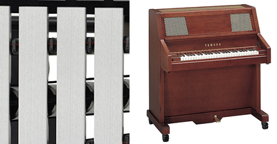 Par rapport au système d'étouffoir conventionnel qui utilise un bras pivotant, le YV2030MS est équipé d’un système qui actionne la sourdine perpendiculairement et parallèlement au clavier. Ce mouvement permet un meilleur étouffement. Ce système est également plus sûr en termes de sécurité car les pièces susceptibles d'accrocher les doigts ont été éliminées.