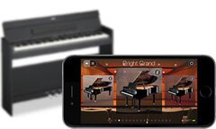 Notre application gratuite « Digital Piano Controller » pour iPhone ou iPad, permet de contrôler la majorité des fonctions du piano numérique d'une manière très intuitive. La sélection des sonorités, des styles et l’accès aux autres paramètres, se fait instinctivement, vous permettant d’accéder à l’ensemble des fonctions avec facilité. Vous pouvez également utiliser l'application pour stocker vos réglages préférés et les rappeler instantanément en cas de besoin.