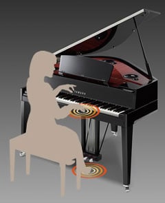 Lorsque vous jouez sur un piano acoustique, l'ensemble de l'instrument résonne. Ces vibrations subtiles sont ressenties tant par les pieds sur les pédales que par les doigts sur le clavier. Le système de réponse tactile (TRS) Yamaha, recrée totalement cette singularité émanant d'un piano à queue. Ces sensations sont transmises au pianiste qui ne fait alors qu'un avec son instrument, même lors d'une utilisation au casque.