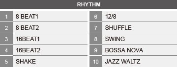Bénéficiant d'une nouvelle fonctionnalité de pistes rythmiques, le P-255 est livré avec dix rythmes représentatifs des styles de musique les plus populaires. Lorsque vous démarrez une piste rythmique, le P-255 commence par une section d'introduction, et quand vous l'arrêtez, l'instrument joue une fin pour terminer proprement votre morceau. Cette fonction est idéale pour les chanteurs qui s’accompagnent au piano.