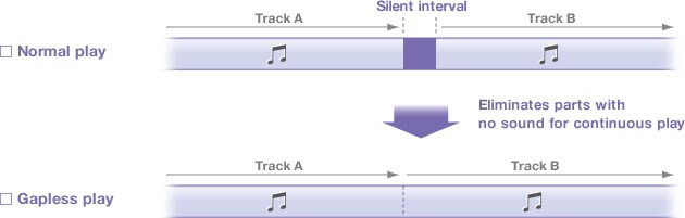 Usually, when playing a sound source with continuous music, classical music or a live album (gapless album), for example, the delay in transmission of song data from an NAS or PC causes silent intervals between tracks. The NP-S2000 reads the next song data in advance according to the network environment, or NAS or PC transmission delay, before the current song is finished. This eliminates the soundless interval so the music can be enjoyed with no interruptions.