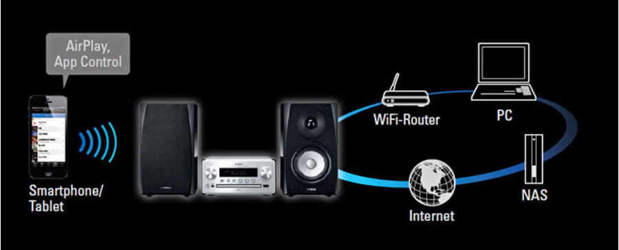 La MCR-N560 vous permet de profiter de vos sources habituelles telles que CD, Radio et USB, mais propose également de nombreuses fonctionnalités réseau pour étendre considérablement vos choix de sources musicales. Vous pouvez vous connecter à votre réseau intranet pour écouter les musiques stockées sur vos PC ou NAS, streamer de la musique depuis des sources en ligne, et profiter de milliers de stations de radio via Internet. Vous pouvez également écouter en sans-fil la musique stockée sur vos smartphones et tablettes.