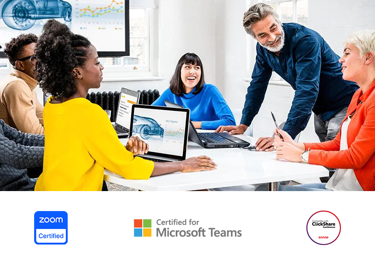 The CS-800’s Smart Framing function recognizes people in the room who are speaking and automatically frames the video signal for remote participants. This allows for greater expression in meetings, and keeps the conversation flowing. In combination with screen sharing devices like Barco ClickShare, information can flow easily, and your meetings can stay on-track.