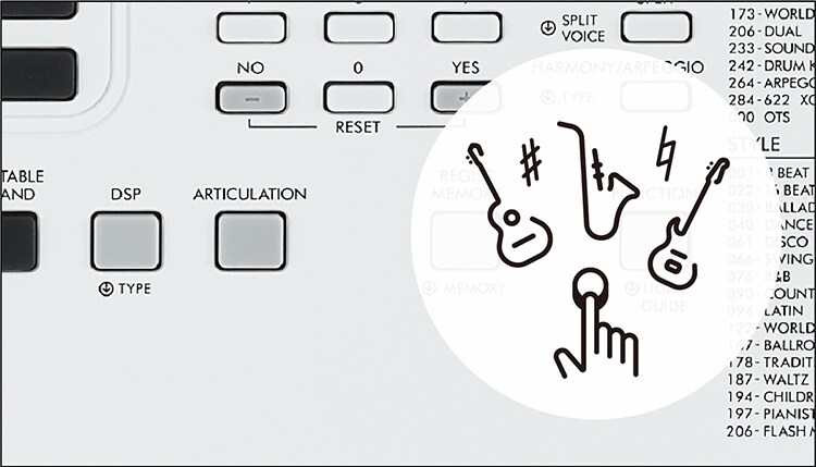 - 205 accompagnements automatiques pour agrémenter vos interprétations, ainsi que de nombreuses fonctions utiles