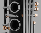 Les boules, les viroles et la bosse de pouce sont ornés d’un élégant placage en or rose qui contribue au raffinement de l’instrument et à la précision de sa sonorité.