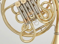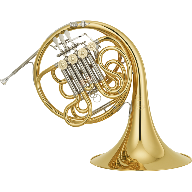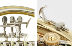 Série personnalisée Full Double Horn, Clé : F / Bb, Vannes : 4 vannes rotatives, Taille de la cloche : M, Type de cloche : Détachable, Alésage : 12.1mm (0.476"), Boîtiers de vanne : Nickel argent, Rotors de vanne : Solide (1er, 2ème et 3ème) Creux (4ème), Action du levier : Chaîne